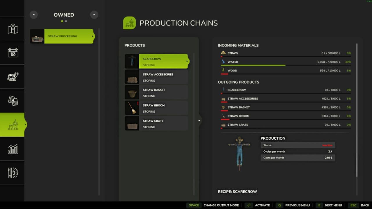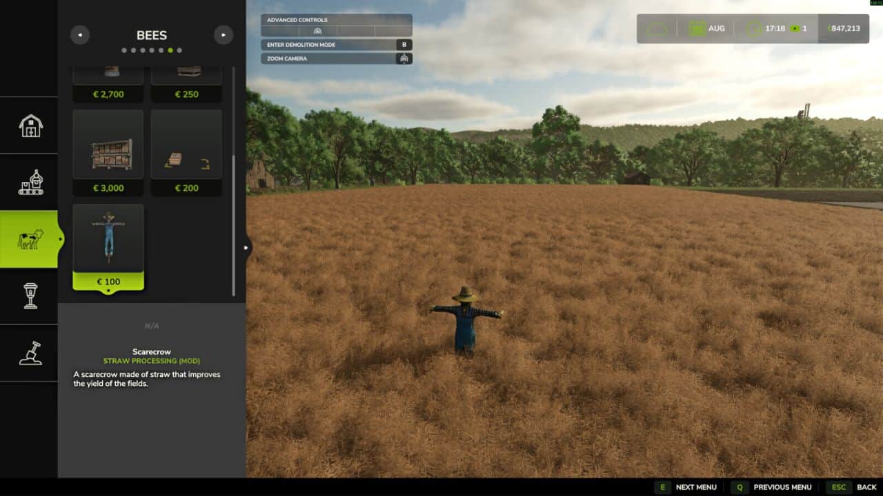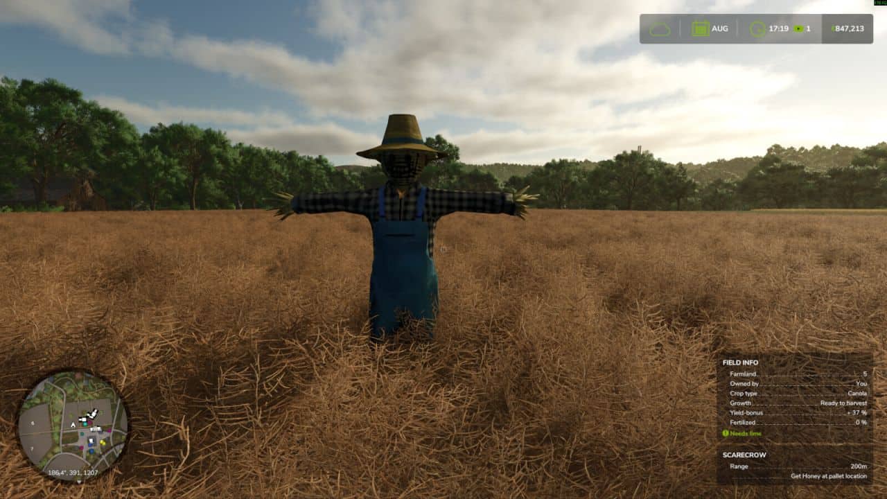 – Added scarecrow to the beehives section, increases field yield but does not produce honey.