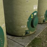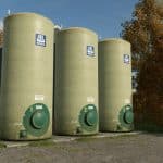 This liquid fertilizer tank is rented out by the fertilizer manufacturer Yara, and is therefore a cheap option to storing liquid fertilizer in the short term. A floating ball on top shows its fill level.