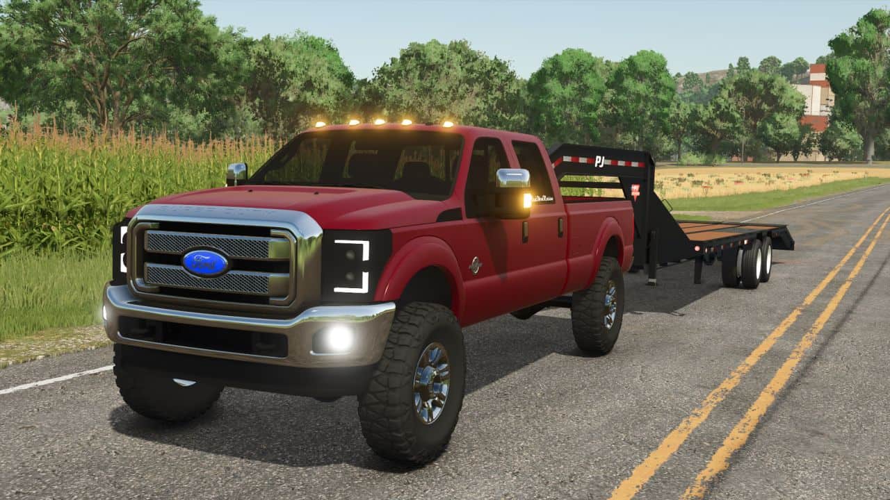 2016 Ford F350 6.7 for FS25. working color, lights, etc. Has many stock options, attachers work, you can put a plow on it, gooseneck, bumperull, everything. you can put stuff in the bed, etc. Everything a work truck needs is on this truck. If you dont like it, simply dont download it. The GMC mod in the first picture can be found on my patreon, i know i will get asked about that.