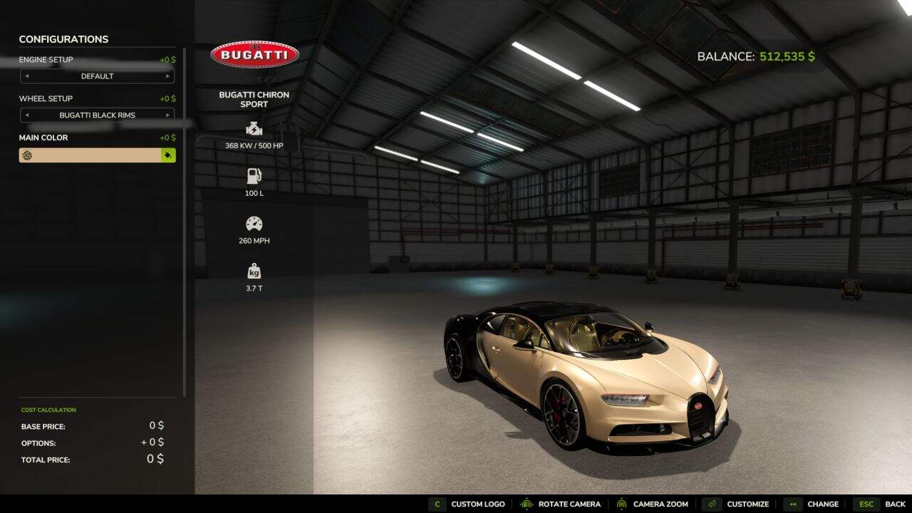 Finding a game interesting after investing 300 hours into it can become a bit challenging. But with mods as long as there is a new update is assured, you are guaranteed a few more hours of new exciting gameplay. FS 25 Cars Mods are one of the greatest upgrades and can make your game unique. Downloading and adding FS25 Bugatti Chiron V1.0.1 Mod to your game is not difficult at all - you simply need to save a file and run it.