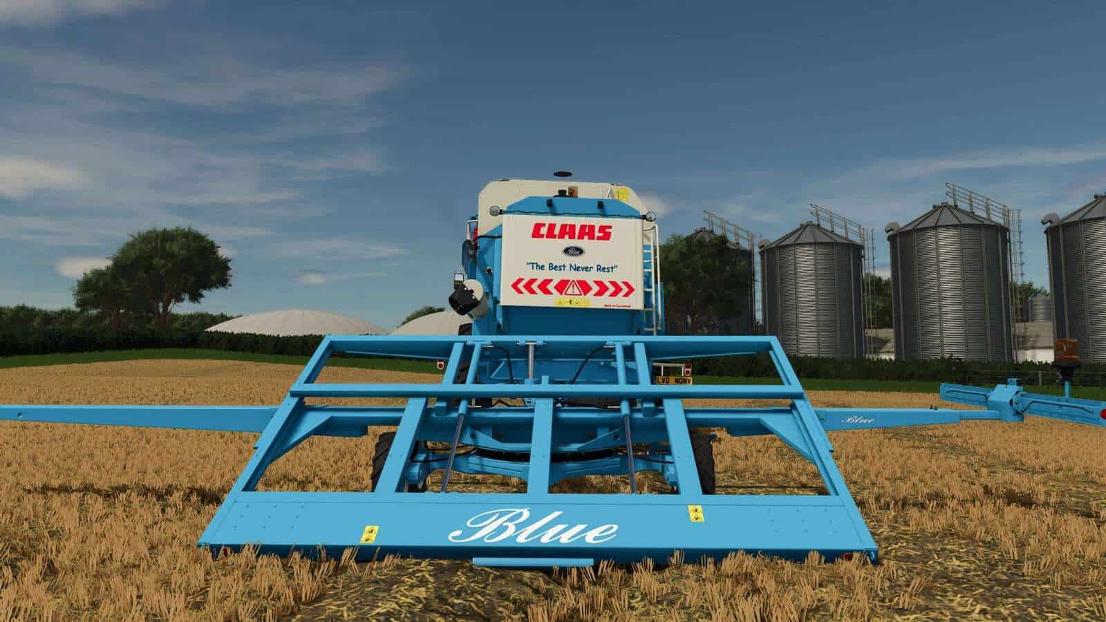 I present to you my CLAAS Blue Tribute pack. From 1965 to 1986 CLAAS distributed blue combines throughout USA. This is a CLAAS Dominator 108 in authentic (genuine colour code) blue colours and a custom engine note as a tribute to the CLAAS Blue 106 of the 70’s and 80’s. There is also the option of modern blue or the colour pallet to choose from. The rear of the combine has the genuine slogan “the best never rest”.