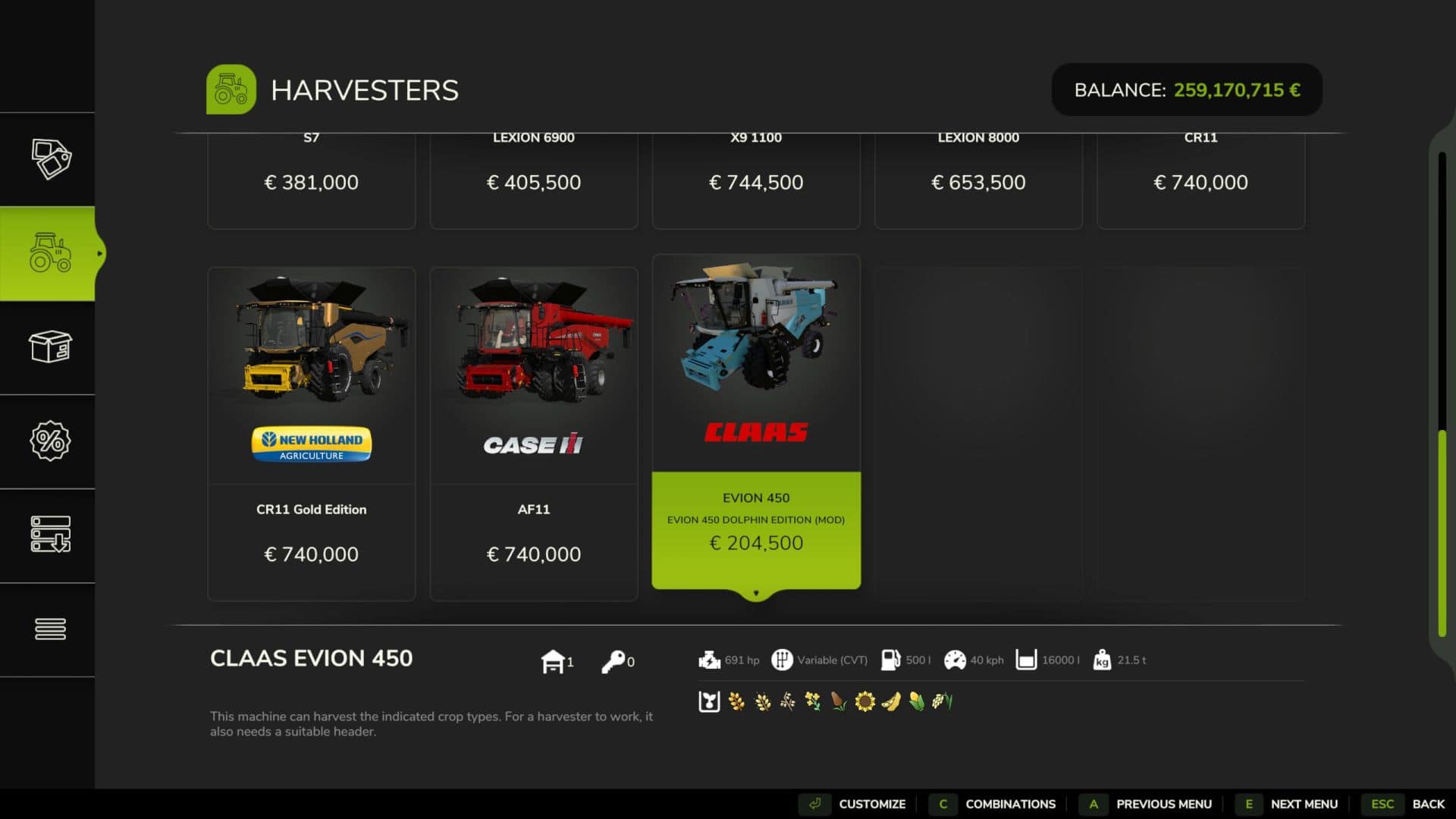 Finding a game interesting after investing 300 hours into it can become a bit challenging. But with mods as long as there is a new update is assured, you are guaranteed a few more hours of new exciting gameplay. FS 25 Combines Mods are one of the greatest upgrades and can make your game unique. Downloading and adding FS25 Claas Evion 450 Dolphin Edition v1.0 Mod to your game is not difficult at all - you simply need to save a file and run it.