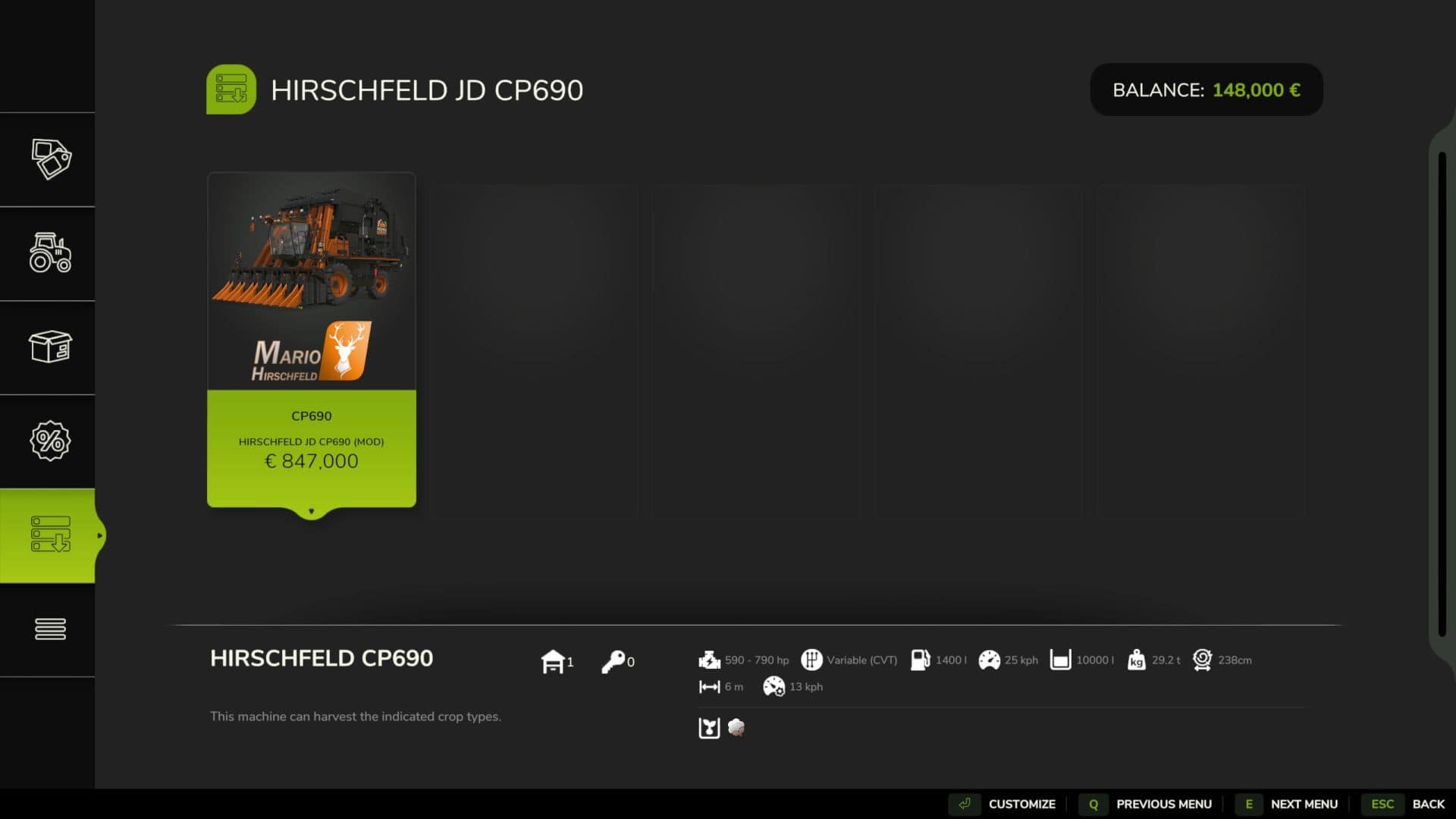 Finding a game interesting after investing 300 hours into it can become a bit challenging. But with mods as long as there is a new update is assured, you are guaranteed a few more hours of new exciting gameplay. FS 25 Combines Mods are one of the greatest upgrades and can make your game unique. Downloading and adding FS25 Hirschfeld John Deere CP690 v1.0 Mod to your game is not difficult at all - you simply need to save a file and run it.
