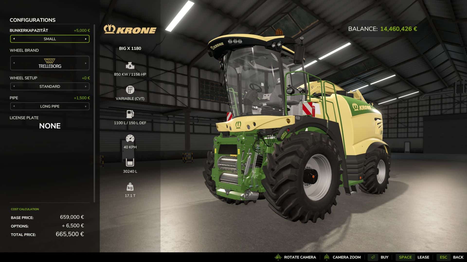 For Krone fans, here is the Big X 1180 with 3 configurable tanks. The silage hopper is increased to 240 liters to accommodate 4 pallets.
