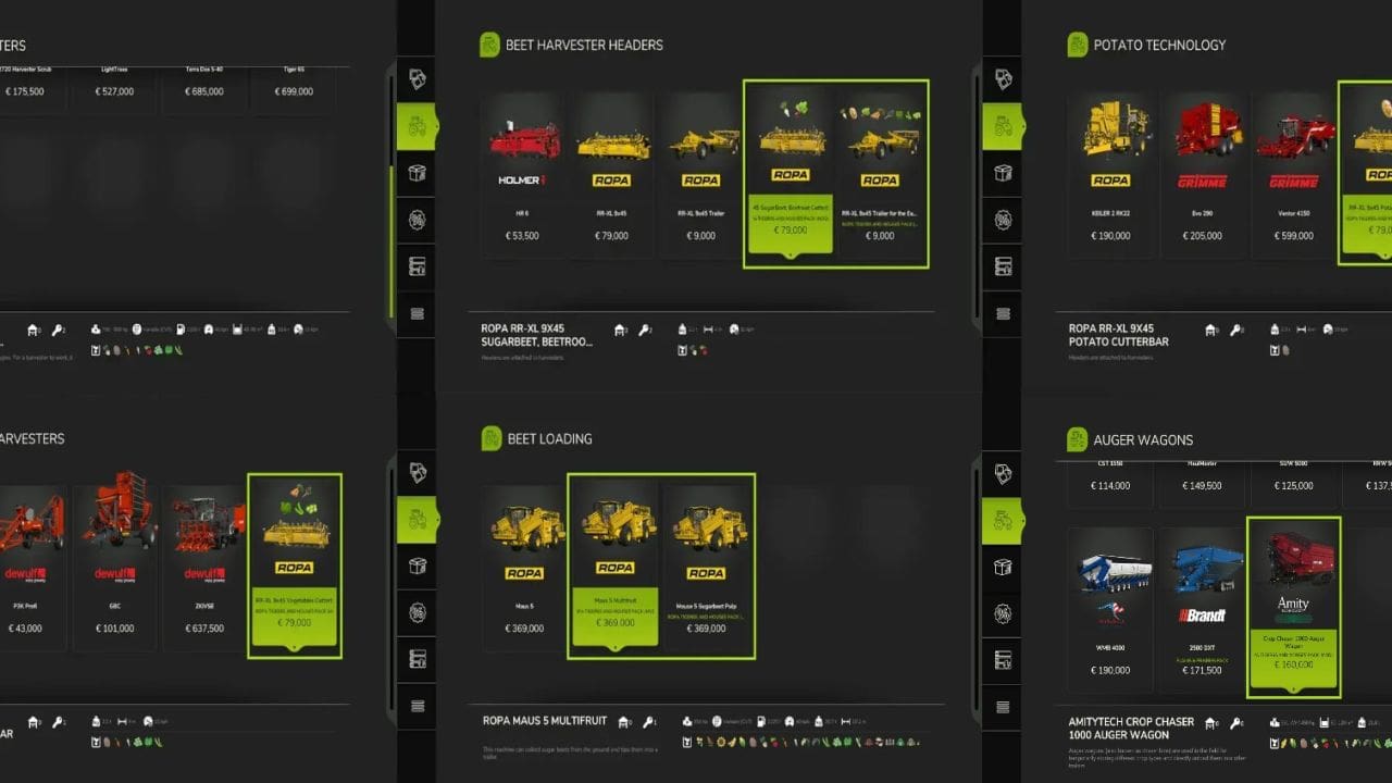 – Shop category: Vehicles –> Root crops –> Beet harvester headers