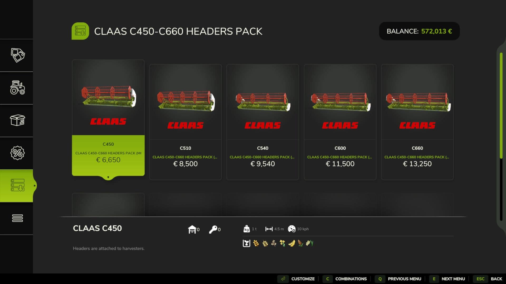 Claas C450-C660 Headers Pack. In this pack you can find old Claas C Series headers. They are suitable for Dominator/Mega/Medion/Lexion etc. combines from 80’s, 90’s and 00’s.