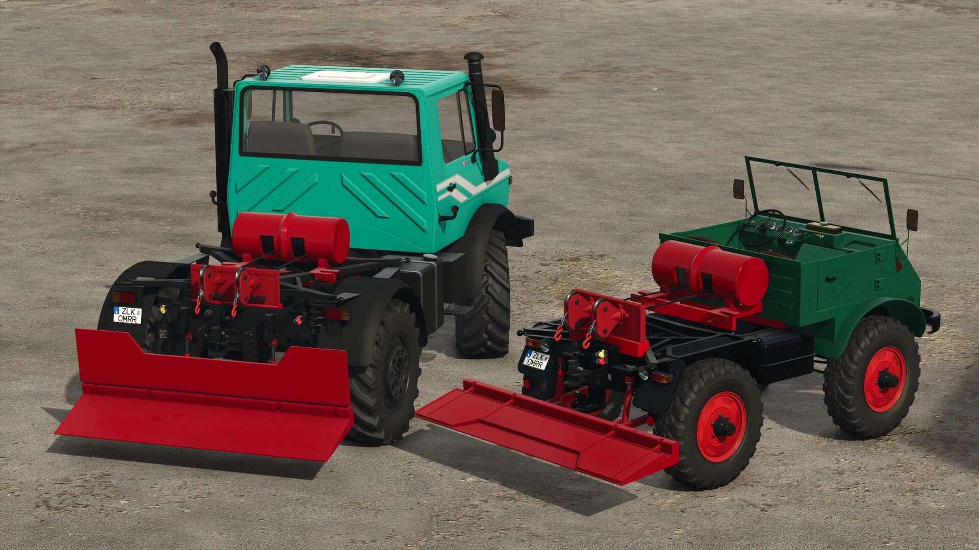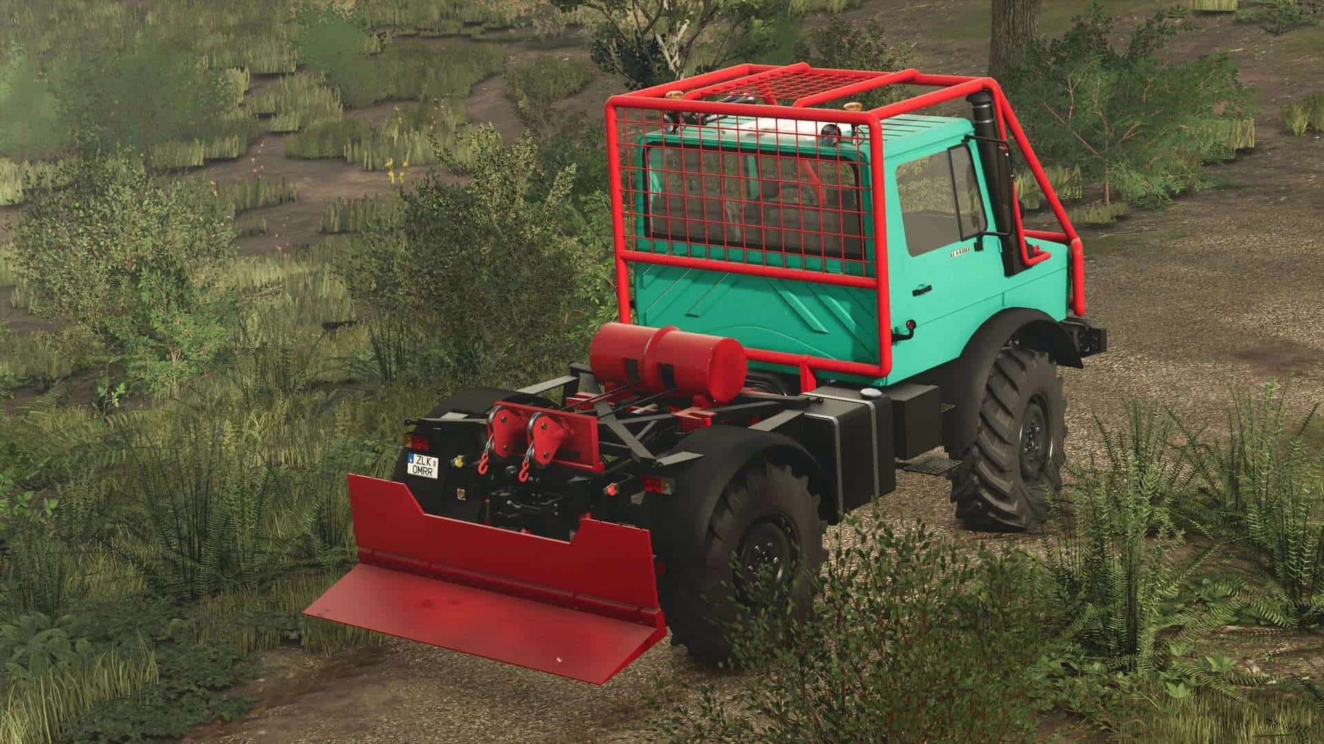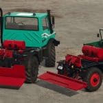 To connect the winch, configure the Unimog without a flatbed, drive under the winch, and connect it. Note: To install it on the larger Unimog, we recommend removing the rear hydraulics, otherwise it will be a bit tight. The mod is log-free.