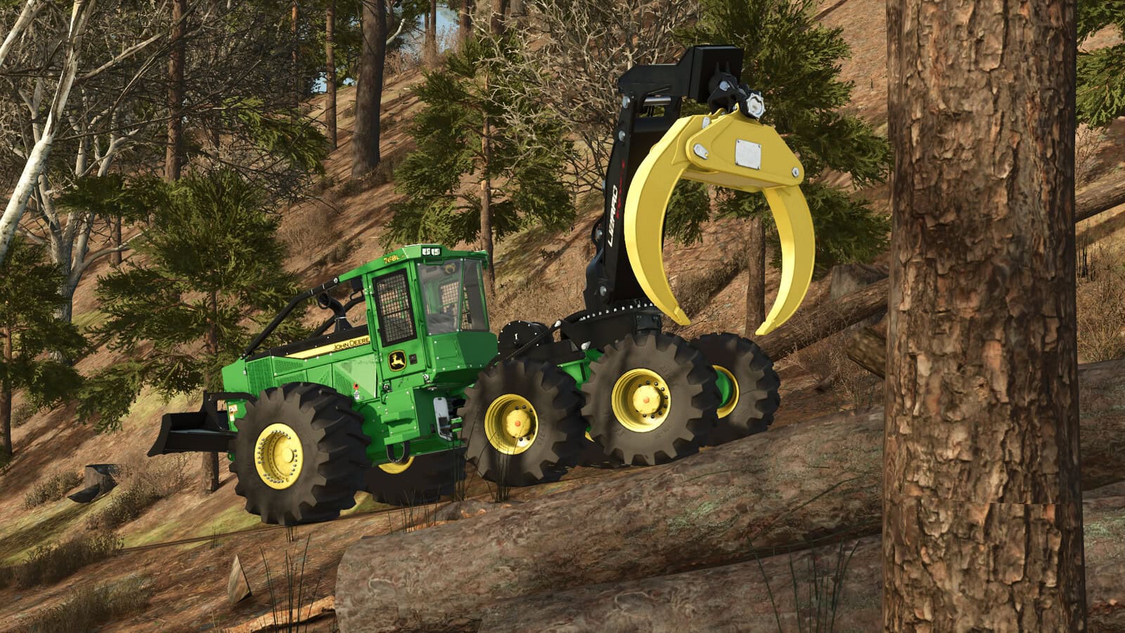 The 768L-II features balanced bogie axles that help reduce machine vibration to deliver a comfortably smooth ride plus outstanding traction and flotation in wet and muddy terrain. A long wheelbase and large grapple working area boosts reach and lift capability, for increased dexterity in the woods. Combined with a tight turning radius, the 768L-II enhances agility at the landing and in tight working areas.