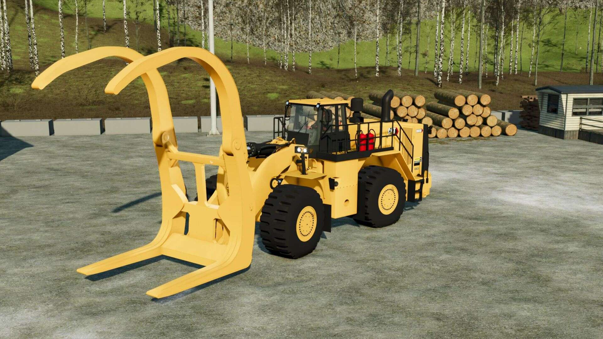 Millyard- Heavier machine made to unload log trucks . Has an add-on for a beacon. The log grapple is only attachable to the Millyard 988.