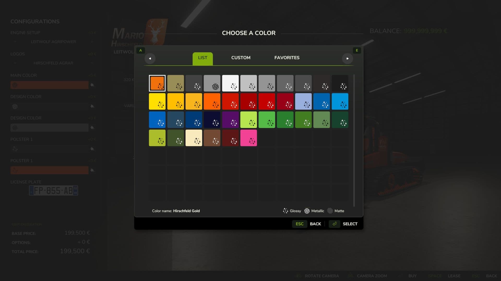 Complete color selection for vehicle and sliding sign