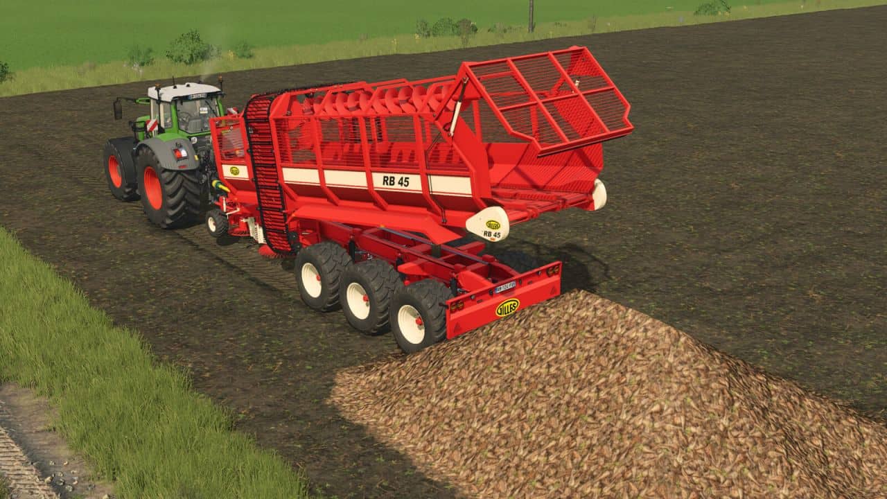 The RB- 45 loader wagon is used to collect the beets that have been previously placed in windrows by the harvester and to unload them at the end of the field.