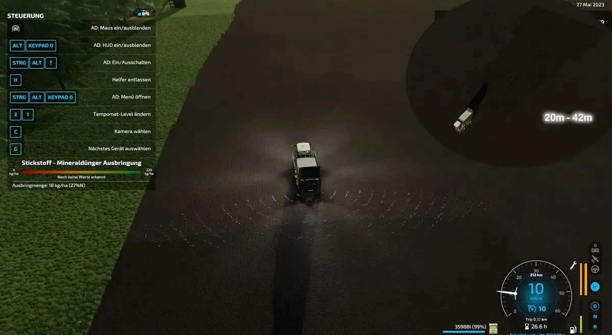 Adjustable spreading width from 20m – 42m (with original use, a maximum of 28m can be adjusted!)