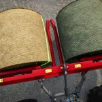 150/180 round bales can be picked up using the tension belts, open the forks, drive into the bale and activate the belts