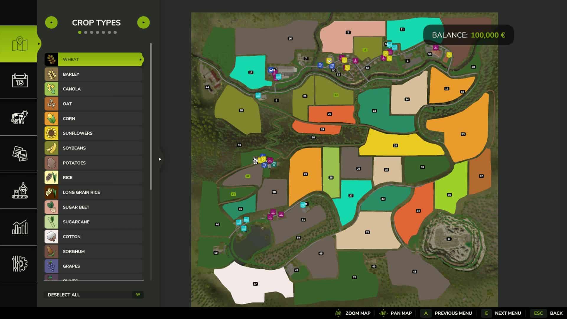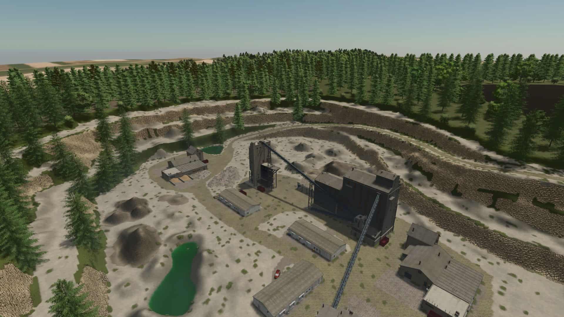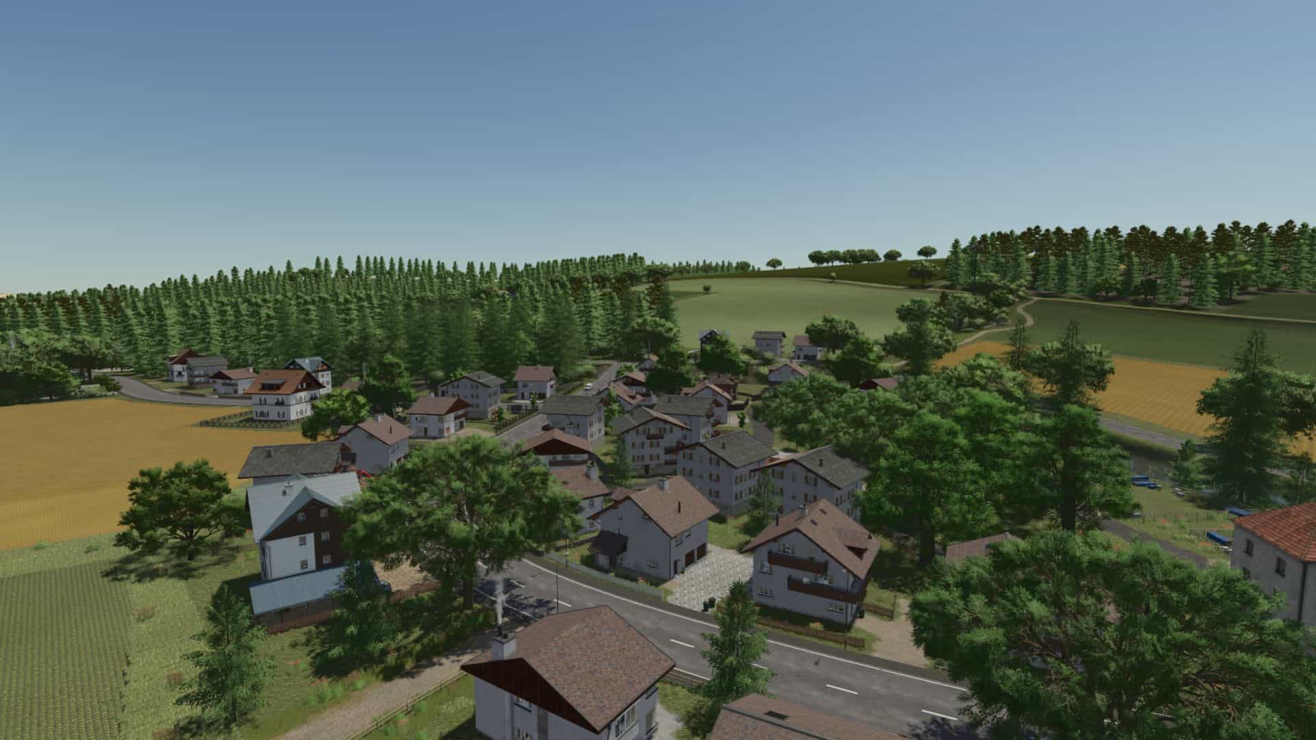 There are 2 farms, all farms can be sold. There is a building site where you can build more productions. There is a BGA, a forestry company, a contracting company, a nursery, a gravel pit, and much more. There are 38 medium-sized fields, 4 forests. There is a vegan meat production.
