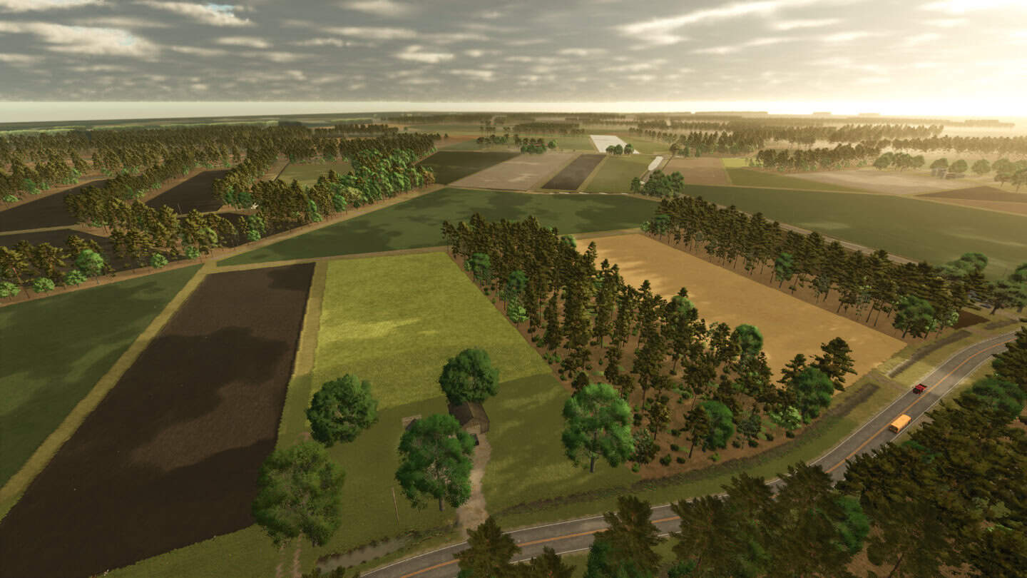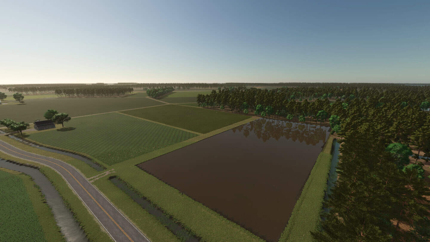Map was built with the idea of making it as accurate to the area as possible(i am constantly getting Deja vu driving through the map, working the fields or looking across the landscape.), and also make it a very playable 4km map and have the freedom to do what ever floats your boat. The map is split into 3 parts mixed throughout the map. equal parts farming, logging and if all goes well in the distant future fishing! 100s of acres of undeveloped land to build whatever you wish.