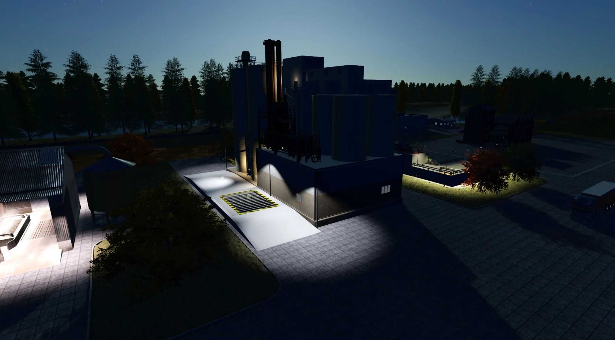 There are 60 fields (from medium to large), two trains, large yard. On the farm we have large stocks for all fruits (including seeds, lime and fertilizer. At the beginning we have a yard, two fields and a machines parked.