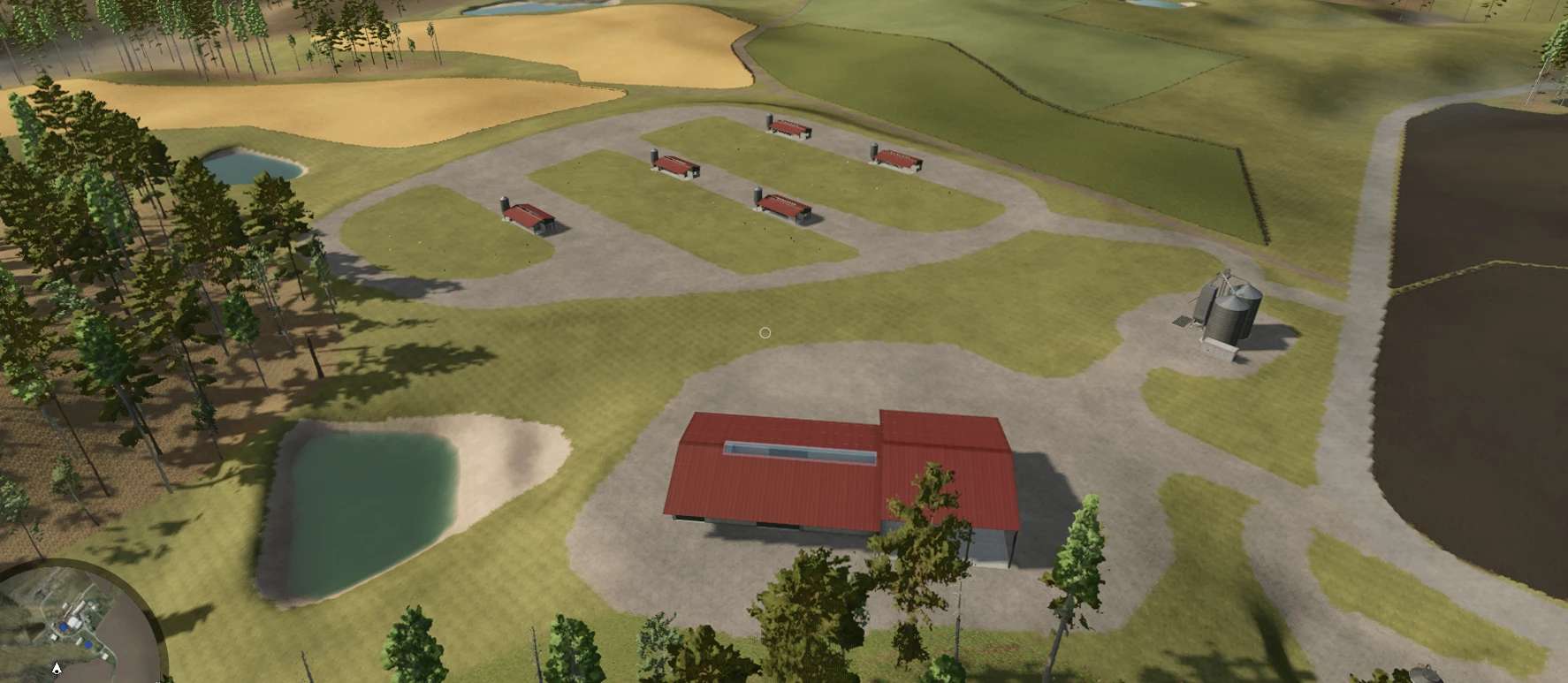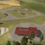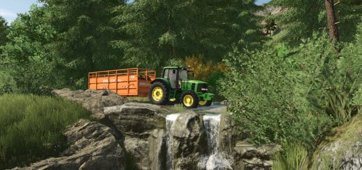 The Map hosts a 1000 head cattle farm, large sheep/goat barn, and a chicken farm capable of holding 5000 chickens! Also is several large area for logging, all logs are able to be cut and run by buncher and processors, one area in particular is 1000 acres and has many terrain changes to test your logging skills on. Once you reach the top, you will find the logging base. Or you can take the ferry across the river and farm or log the other side. There is a grain elevator, sawmill, carpenter, spinnery, tailor, restaurant, BGA, Canned good factory, and Warehouse.