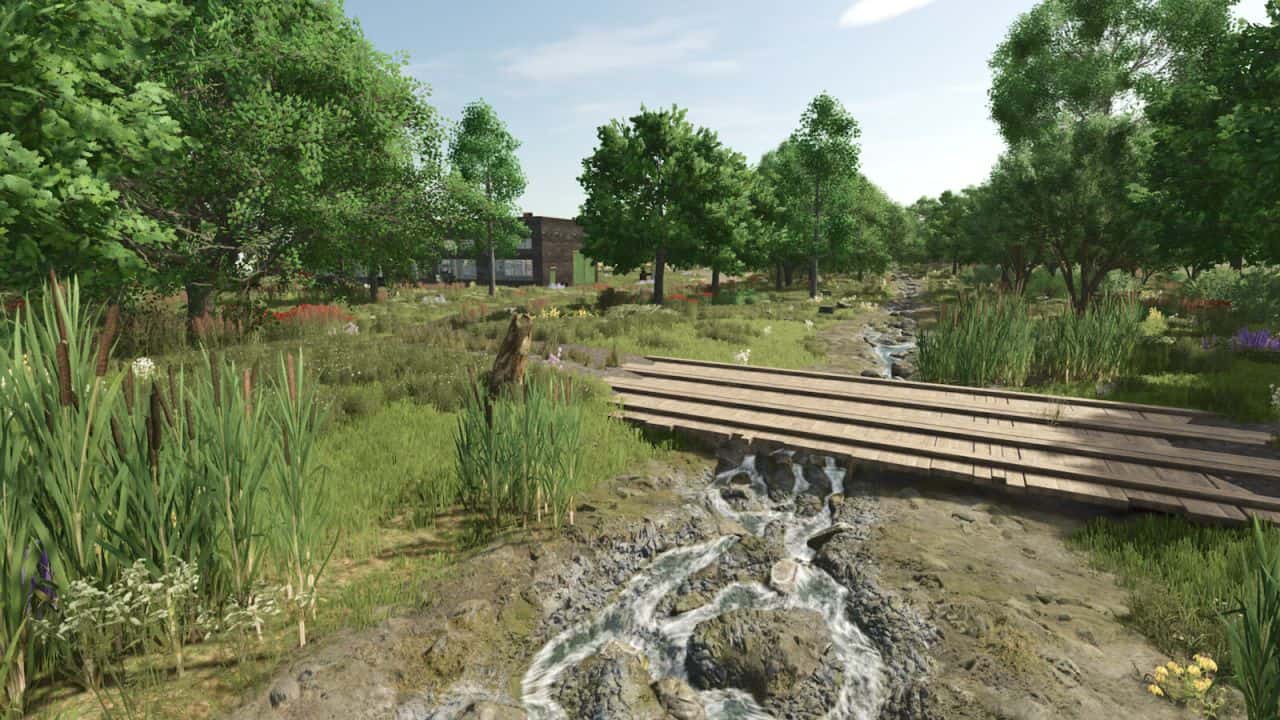 – New scenic forest with a stream and wider roads.