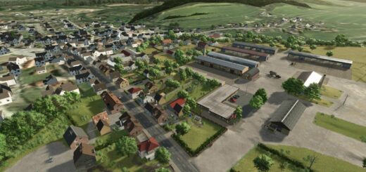 – Town here’s has had the most changes. The terrain was adjusted, clutter removed around the shop, Road junction slopes smoothed out, Dairy removed and area reworked for new placeables which include the following, Sugar Mill, Soup Production, Cereal Factory, Spuds R Us, Dairy and Grain Mill Production. The road was lifted and a fence placed along the train track.