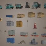Some placeable objects for decorating a construction site. You can find them in the decoration tab.