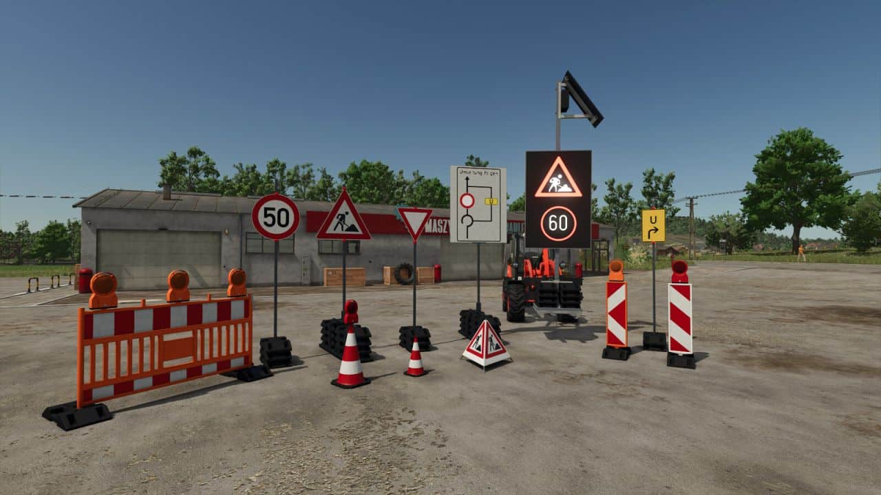 This package offers a comprehensive collection of freely configurable traffic signs and safety elements.nIt is based on the current RSA and StVO guidelines and allows the signs and safety measures to be precisely adapted to specific locations and speeds, resulting in authentic and compliant signage.