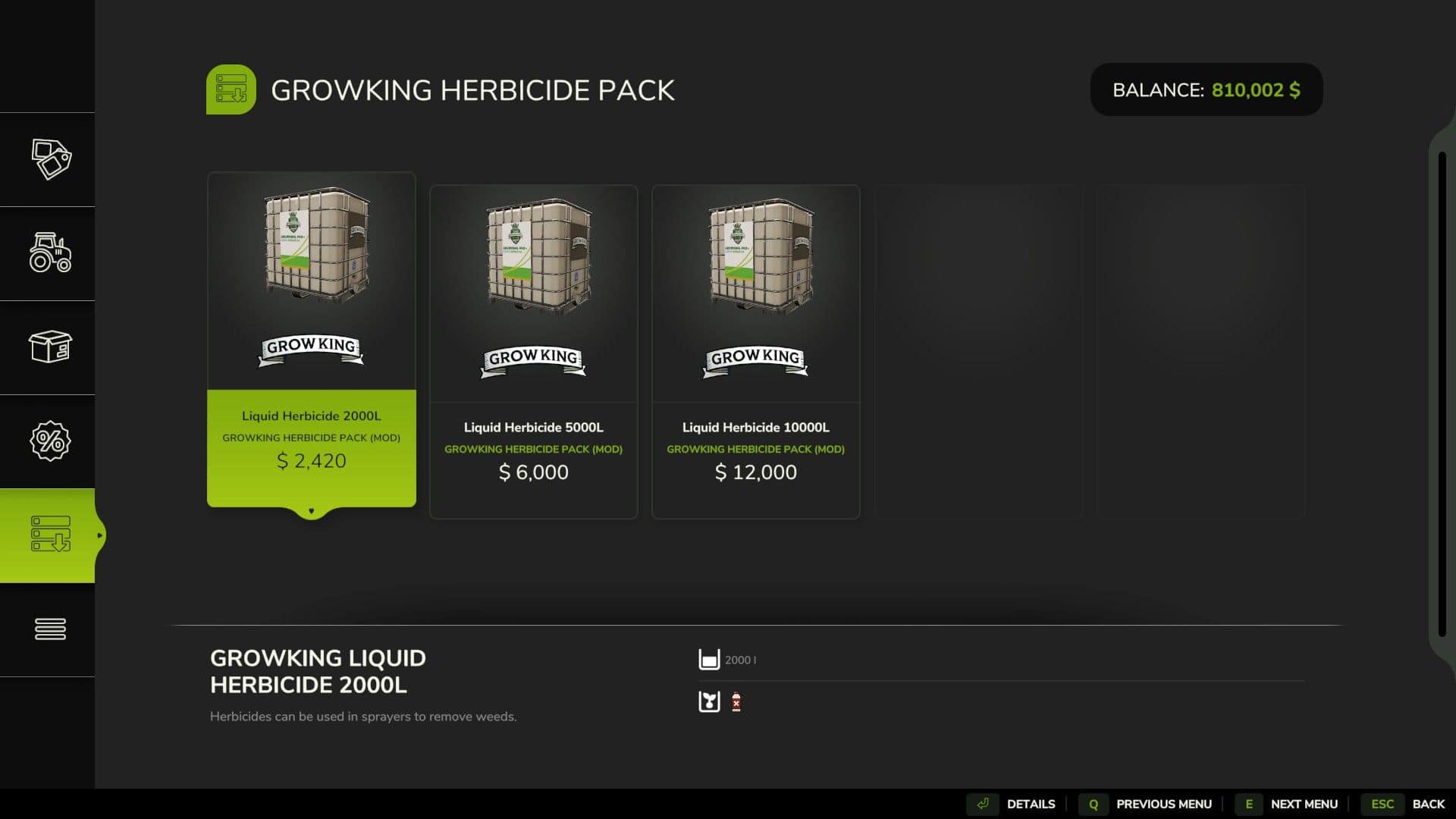 FS25 “GrowKing” Liquid Herbicide Pack v1.0