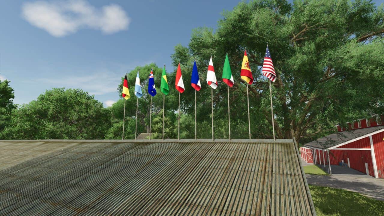 Finding a game interesting after investing 300 hours into it can become a bit challenging. But with mods as long as there is a new update is assured, you are guaranteed a few more hours of new exciting gameplay. FS 25 Objects Mods are one of the greatest upgrades and can make your game unique. Downloading and adding FS25 Nations Flags V1.0 Mod to your game is not difficult at all - you simply need to save a file and run it.