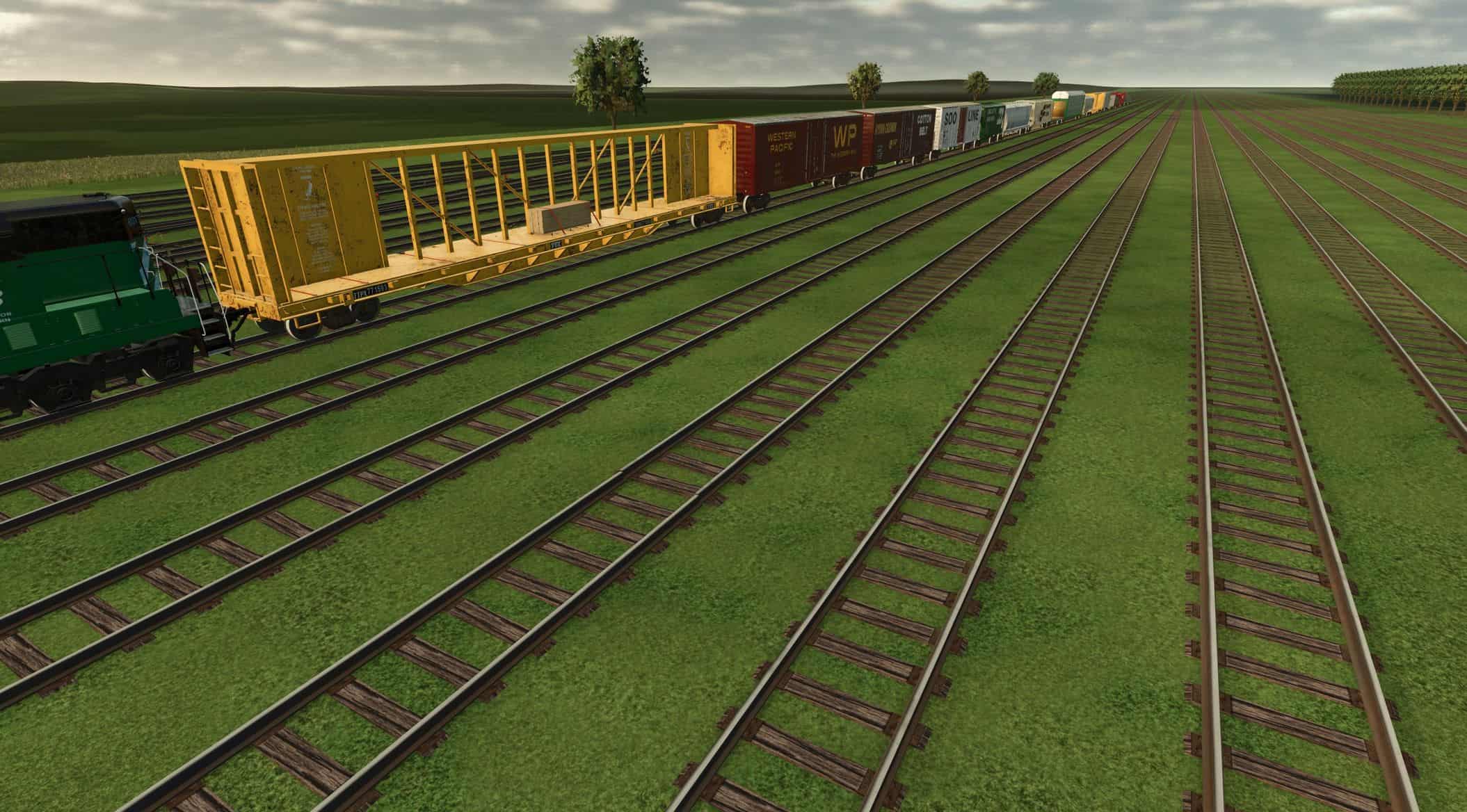 For all of the rolling stock, I use the store deliveries mod to spawn it next to the track, then I use super strength to place the railcars on the track. I recommend LUMBERJACK mod as it is capable of lifting the rolling stock if you change the settings in game. Anyways, there are invisible wheels in the middle of the front and rear axle of every truck. Those invisible wheels sit down in between the rails and thats what keeps them on the tracks. the trucks will sit on the tracks as they should. Once you have the rolling stock on the tracks correctly with the invisible wheels between the tracks, you can connect a locomotive to it. You then must hit the “fold” function to unfold the rolling stock. This will allow the trucks to turn as they should and allow them to follow the rails correctly. All rolling stock can be connected from either side, except for the passenger cars and the intermodal cars. Those can only be connected when they are all facing the same way. This mod, like most of my mods is a big WIP. I add stuff as I think of them and I am constantly tweaking and updating it. As always, let me know if you have any suggestions or feedback.