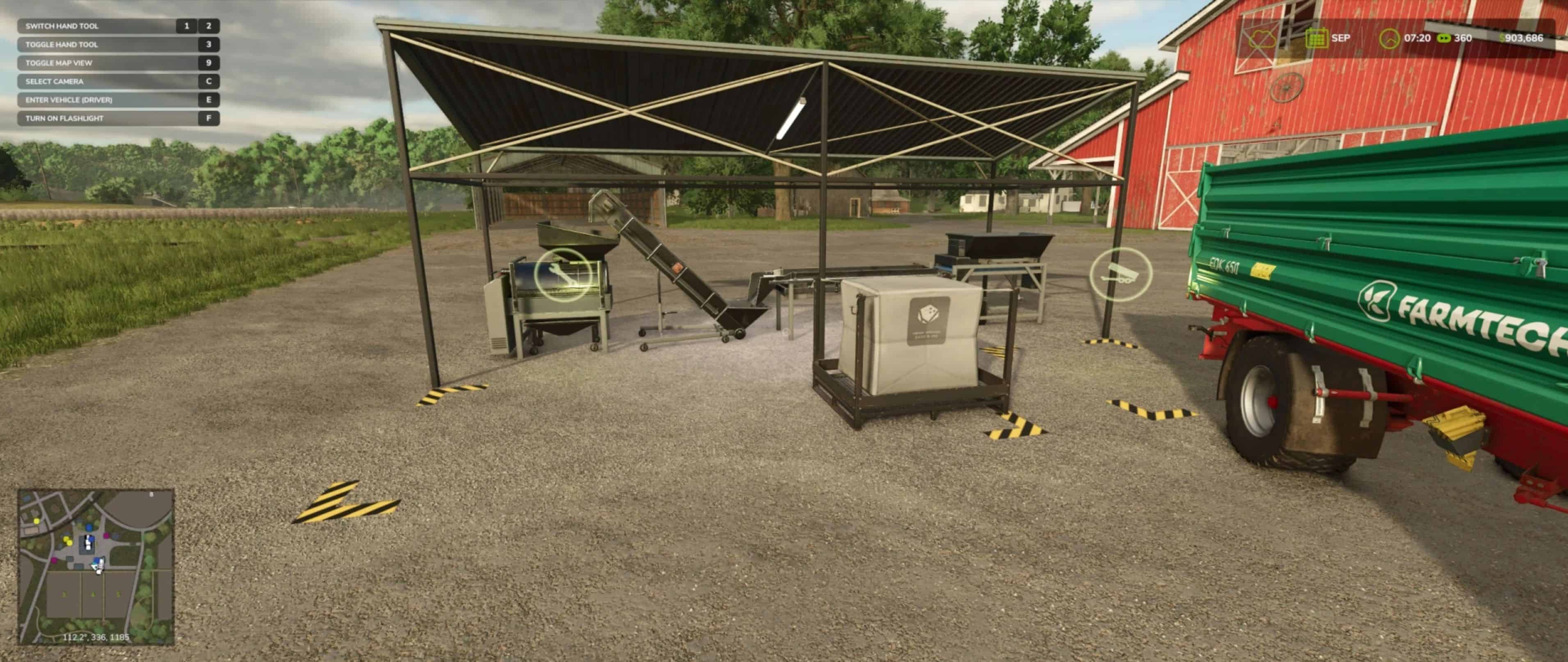 This is the grape processing production converted to product lime from the field stones from plowing and cultivating. It is a simple mod that produces 2000L lime pallets at a 1 to 1 ratio from the stones you load in.