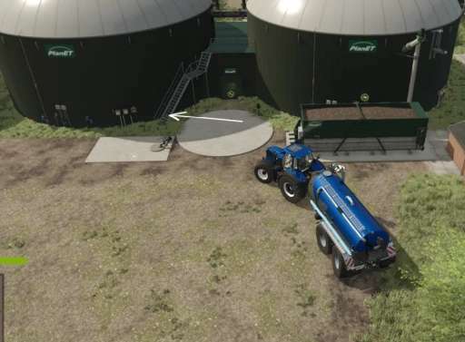 The storage silos, feed areas, manure and milk pick-up areas, and silage silos were entered on the farms. The BGA and Hof Silage silos are designed to allow for rolling filling.