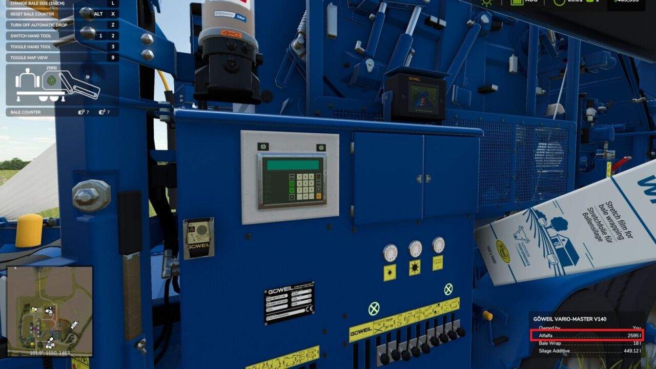 – Also added .lua that allows you to use the stationary baler (varioMaster) with ‘ALFALFA_WINDROW’ and ‘DRYALFALFA_WINDROW’.