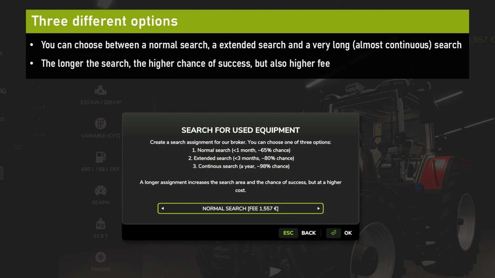 In the store you will now find a new button, “Find Used” (default key: C), where you will have three options: