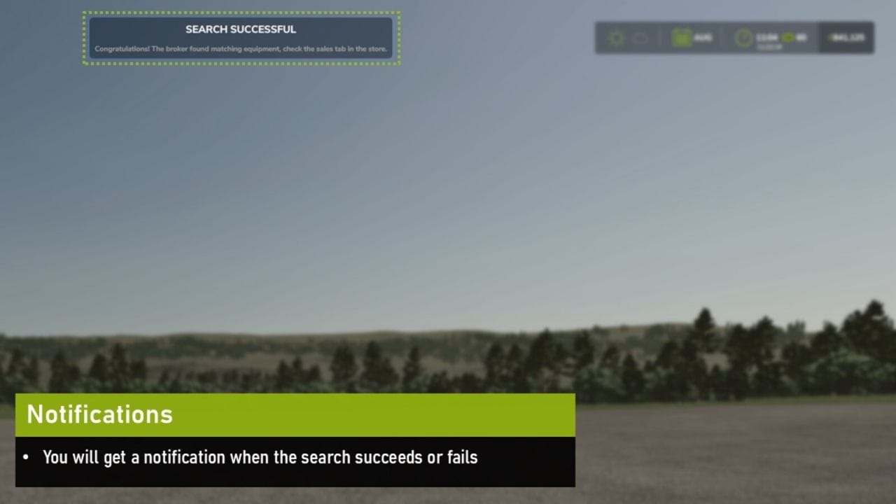 If/when the broker finds a match, you will receive a notification in the game, and the equipment will be available for purchase in the Sales tab in the equipment shop.
