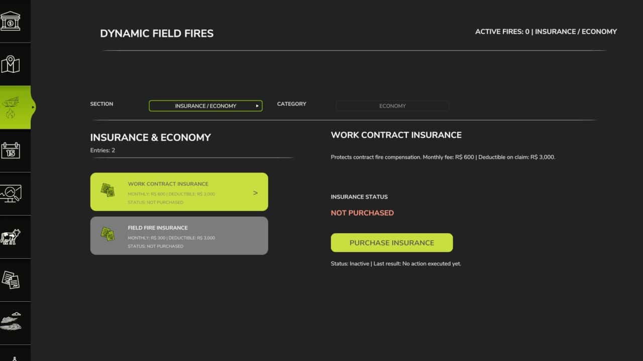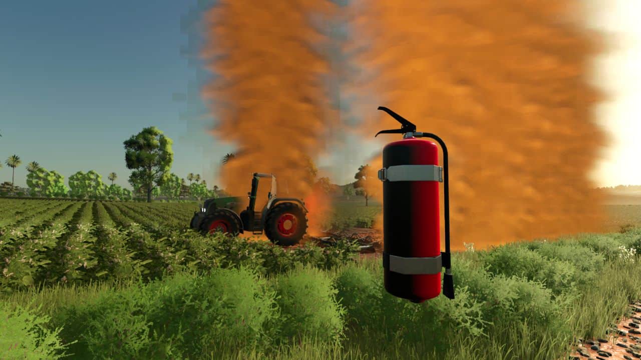 The mod transforms fires into a continuous gameplay layer: outbreaks can appear naturally depending on temperature, drought and environmental conditions, or due to incidents with machines. The player needs to prevent, monitor and react using fire extinguishers, flame retardant spray and strategic decisions within the mod menu itself.