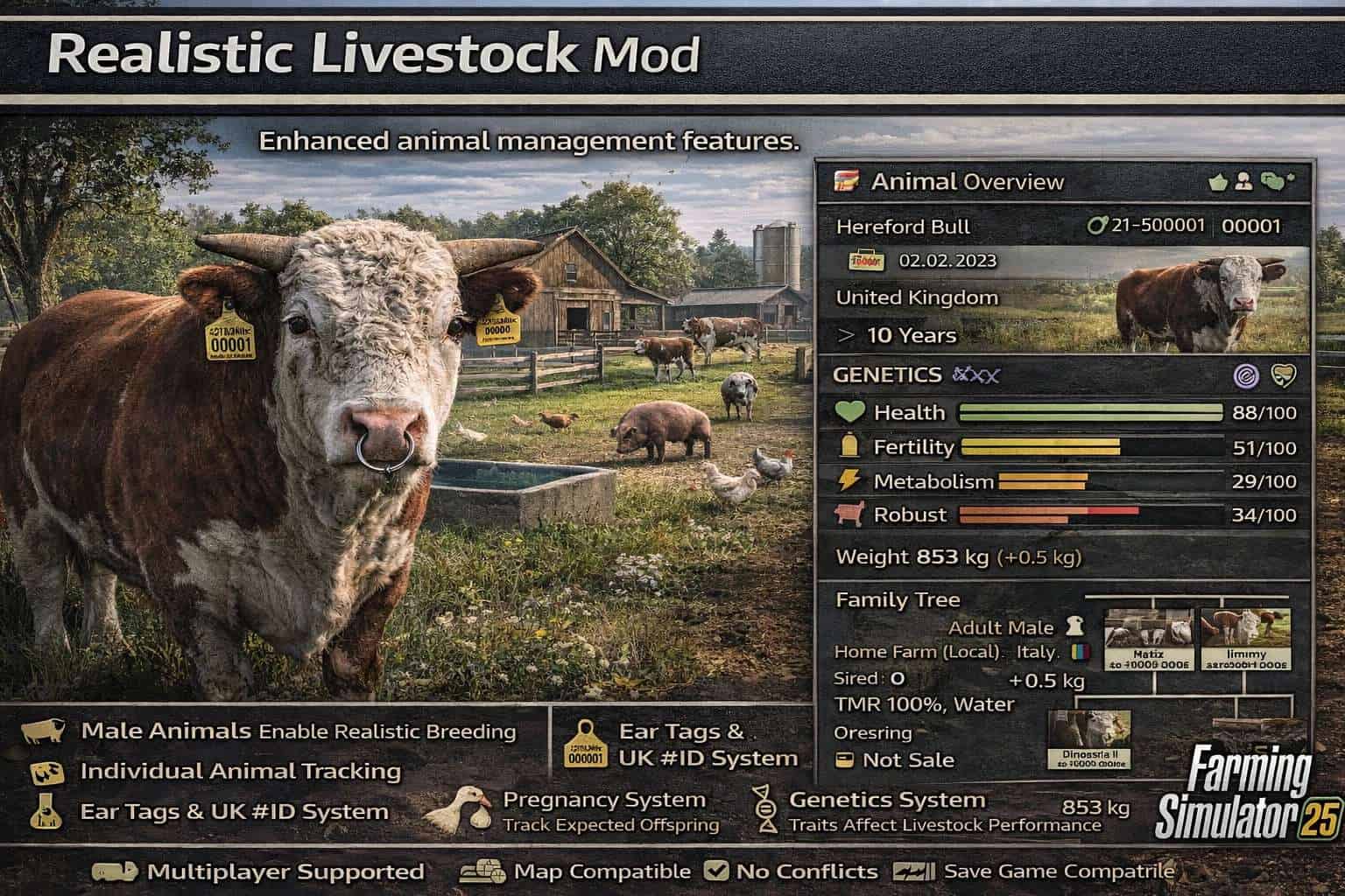 This mod is based on the FS25 Realistic Livestock mod by Arrow-kb, who has decided to cease all his mods.