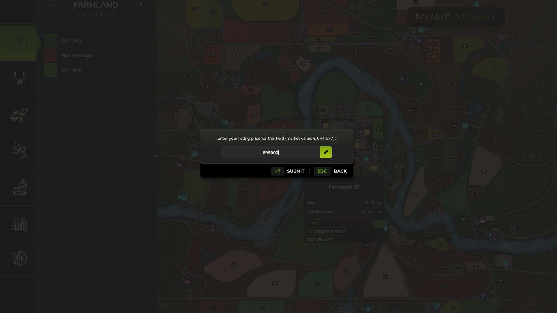 Makes farmland acquisition more realistic and strategic. Field prices reflect their actual crop value, and not all fields are always available for purchase.
