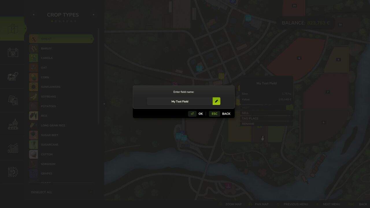 Allows you to rename your fields directly from the map. Click on a field you own and use the “Rename” button to give it a custom name.