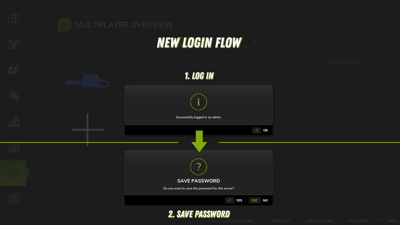 A server admin password manager for multiplayer. This mod saves your password when you log in as an administrator and automatically logs you back in as an administrator the next time you visit the server. Each user can decide for themselves whether the password should be saved, loaded on request at each entry or loaded in general. In addition, the functionality can also be completely disabled.