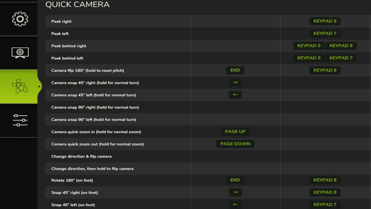 – Then also rebind the control action keys for Quick Camera, in case they seem wrong for your style of play.
