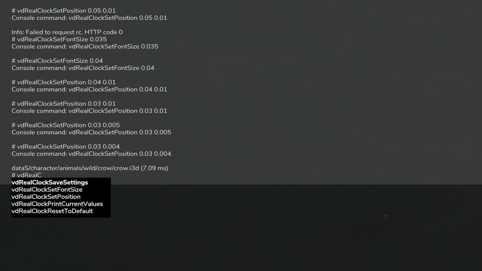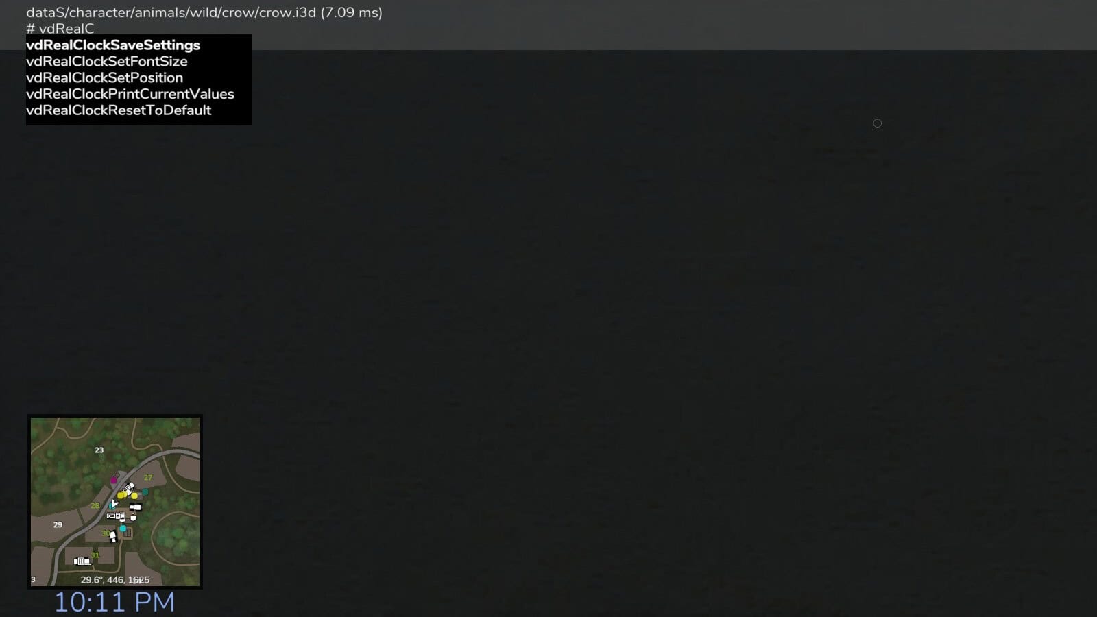 * vdRealClockSaveSettings -> Saves the changed values in the xml within the modSettings folder