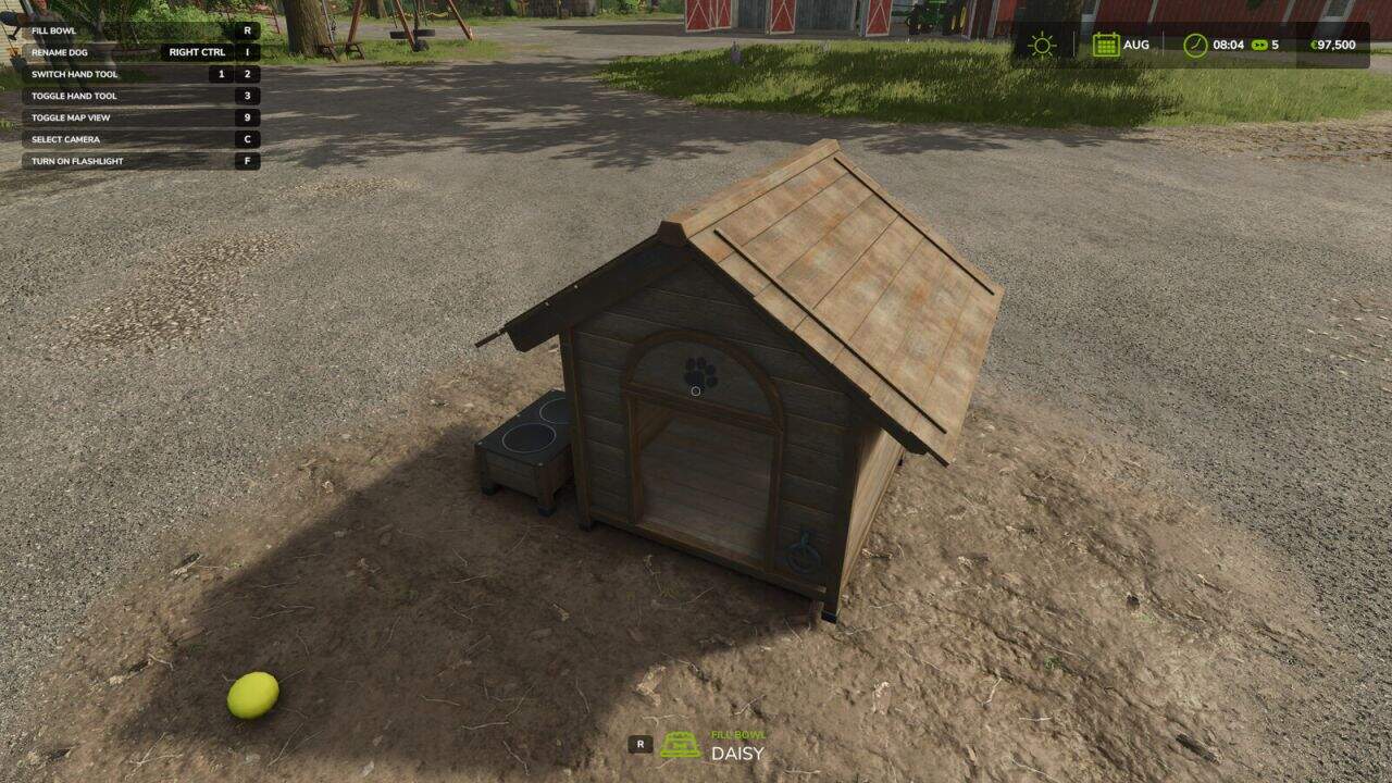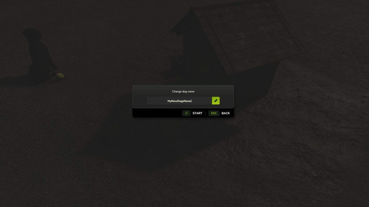 Ever wanted to give your farm dog a proper name? Now you can. This mod allows you to rename your dog directly in-game. Simply approach your doghouse and use the assigned hotkey to open a rename dialog. Features Rename your dog at any time Works in new and existing savegames Customizable hotkey (can be changed in the Controls settings menu) Bonus Removes the default limit of one doghouse per farm (Can be reactivated in Settings) How to Use Walk up to a doghouse. Use the assigned hotkey (default: Right Ctrl + I). Enter a new name and confirm. The hotkey can be changed at any time via: Options → Controls → Mod category