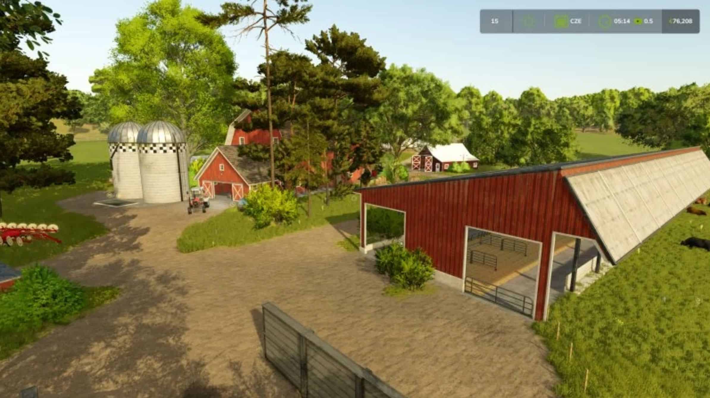 A save created by me on the original Rivenberg Springs map. I’ve built a small American farm there, set in a picturesque environment surrounded by greenery, trees, streams, and a fairytale-like river. The farm primarily focuses on beef cattle breeding. Additionally, it also produces eggs, honey, and vegetables.