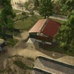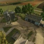 Placed machines, farm buildings and starting resources.