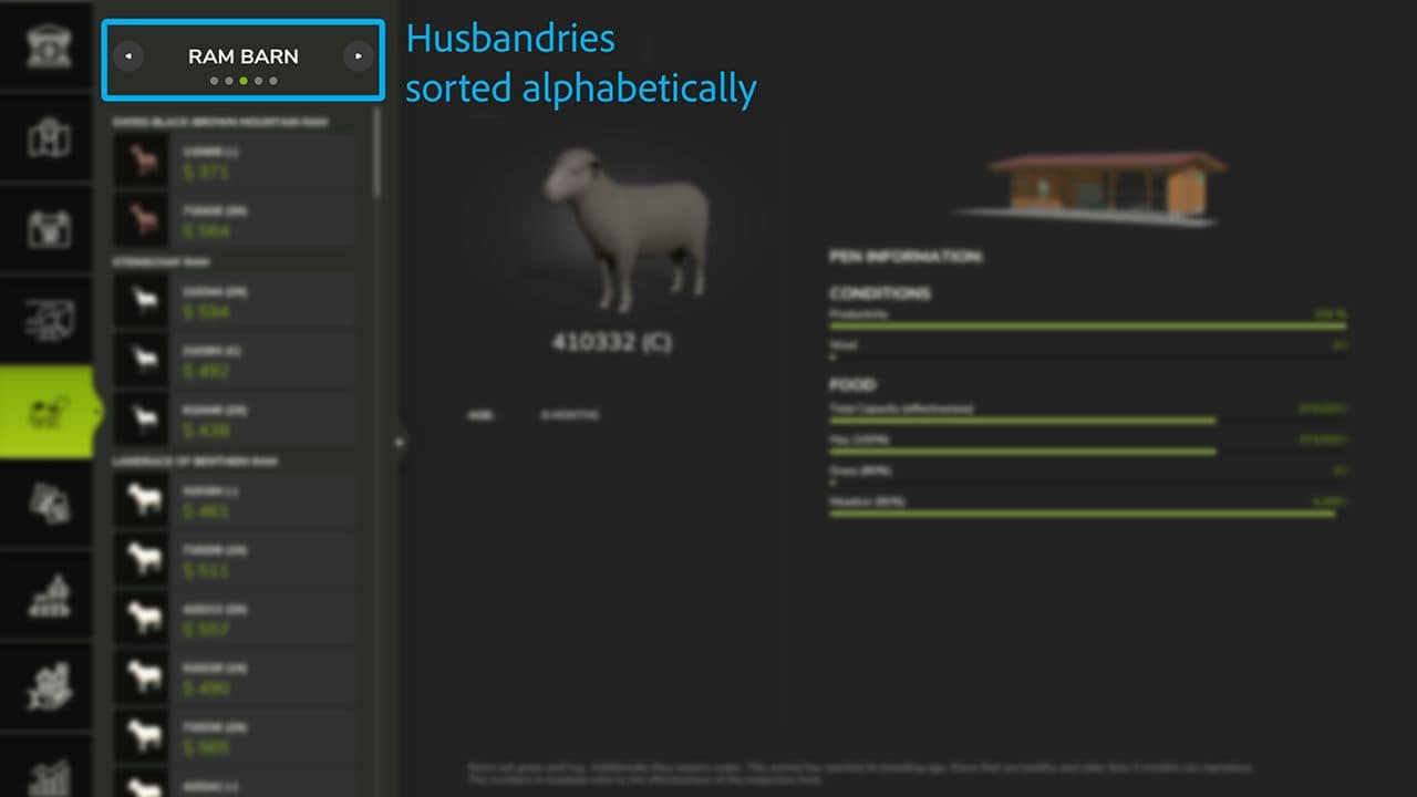 FS25 Sort animal husbandries alphabetically V1.0
