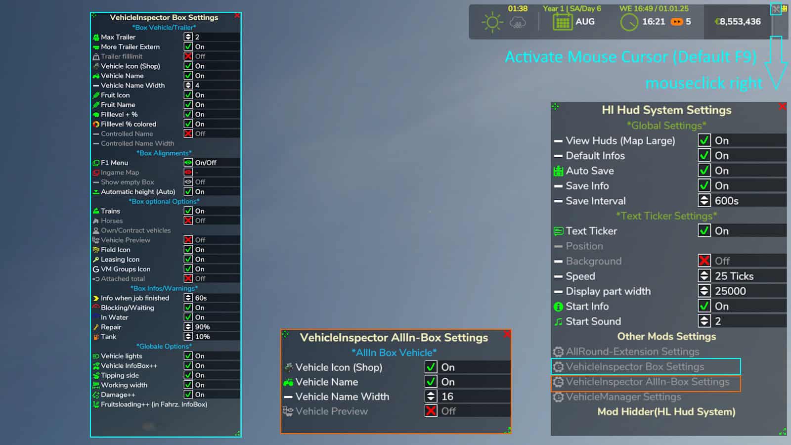 Finding a game interesting after investing 300 hours into it can become a bit challenging. But with mods as long as there is a new update is assured, you are guaranteed a few more hours of new exciting gameplay. FS 25 Other Mods are one of the greatest upgrades and can make your game unique. Downloading and adding FS25 VehicleInspector v1.0 Mod to your game is not difficult at all - you simply need to save a file and run it.