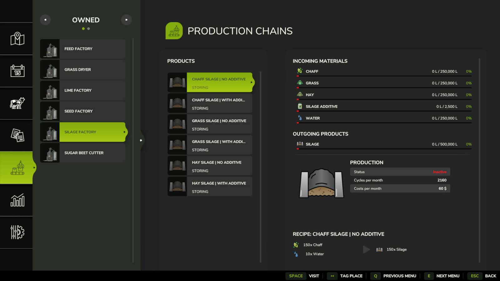 All facilities are placeable, factory-type production points with 500,000L (or more) capacity, low upkeep, and cost-effective CPM stats. Perfect for expanding your farm’s self-sufficiency.