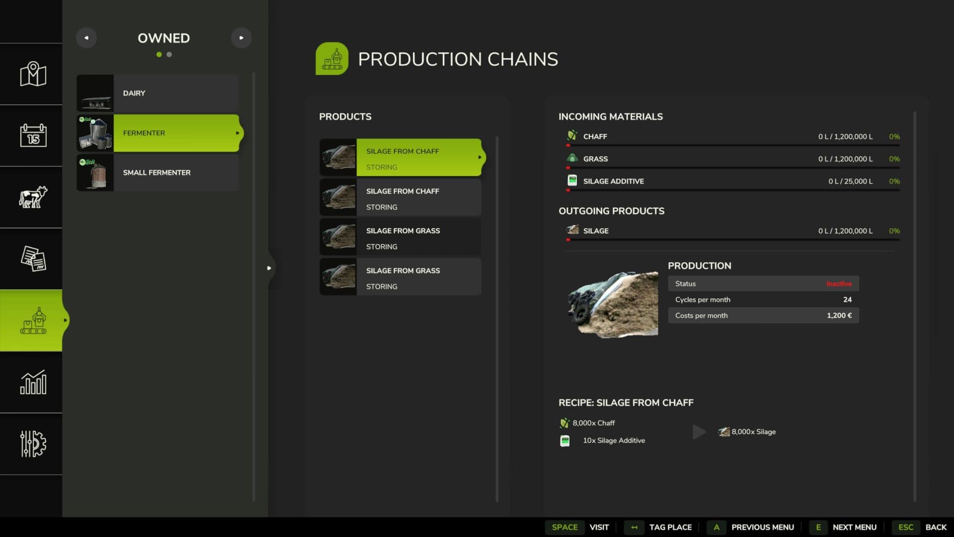 2 Fermenter: In the fermenter, silage is made from grass and/or chopped materials using silage additives. In the small fermenter, silage is made only from loose grass and/or chopped materials using silage additives.