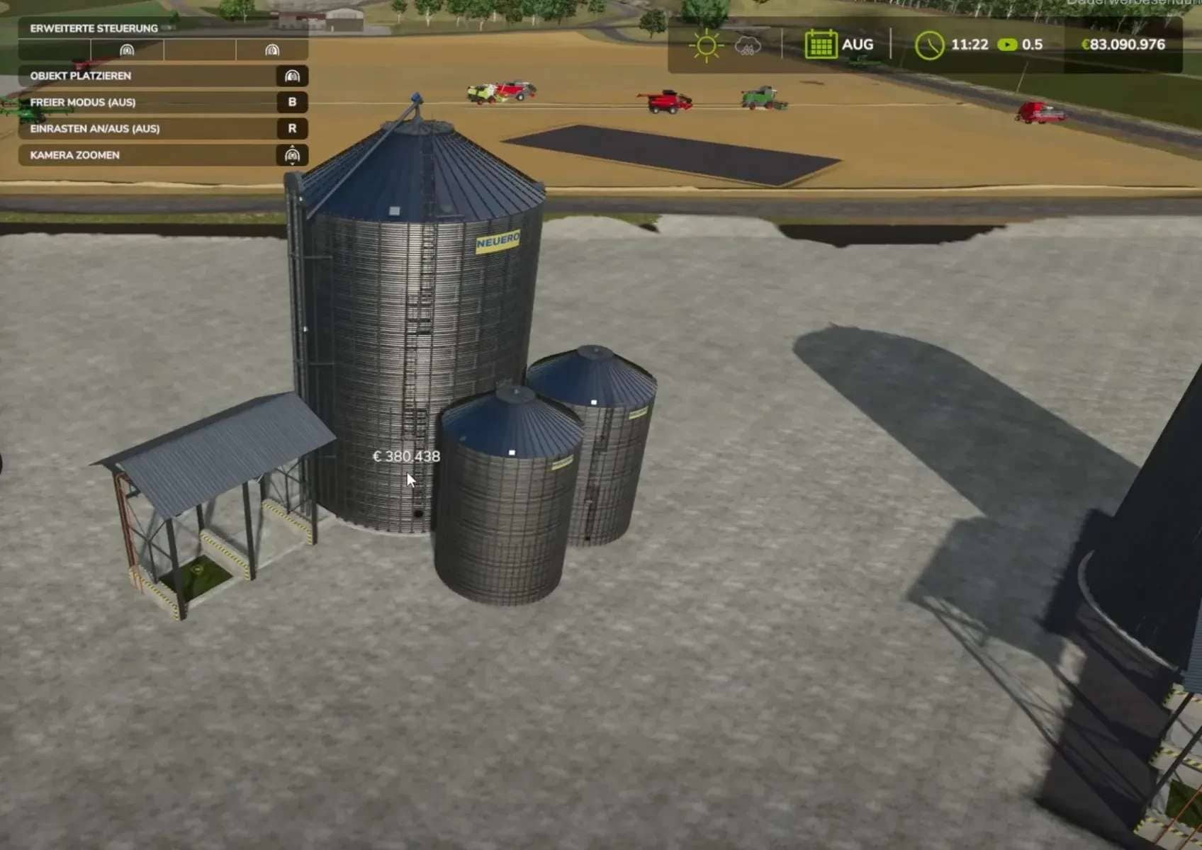Production per hour: 2000 liters each, capacity 0.4 million. The bale trigger warning in the log can only be fixed after the Giants Editor is released.