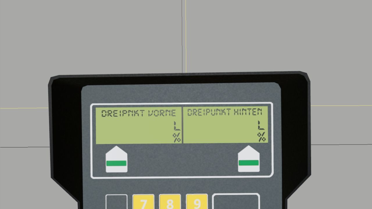 Device in the 3-point front: 1 Filling volume in liters and percent
