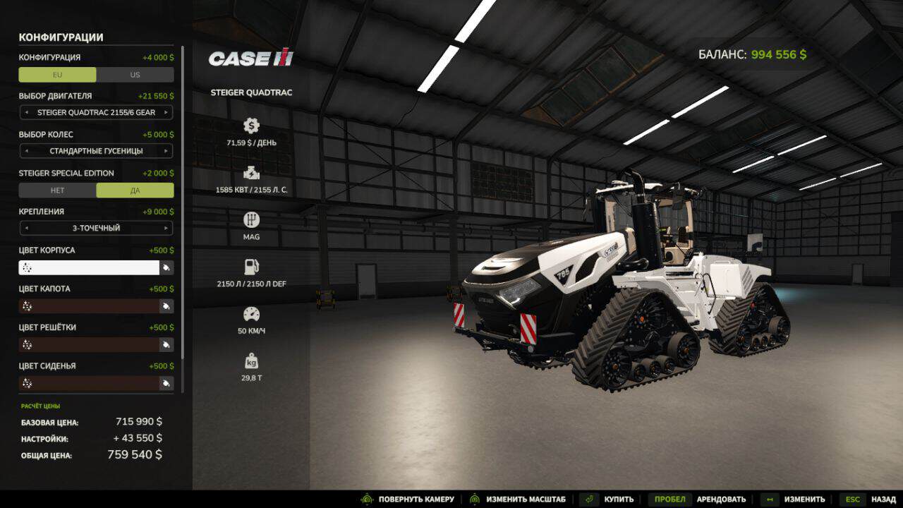 – Transport: Case IH Steiger Quadtrac 715 tractor.